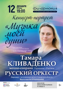 12 декабря на сцену большого зала выйдет певица, для которой наш город — не просто точка на карте, а исток творчества, семья и дом. Тамара Кливаденко (меццо-сопрано, Германия – Россия) — лауреат всероссийских и международных конкурсов, приглашенная солистка оперных сцен Германии, Австрии, Италии и США — вновь приедет в родной Тольятти, чтобы поделиться сокровенными моментами своего творчества.
