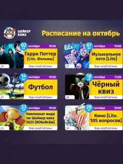 23 Октября - Чемпионат мира по Шейкер квиз в Бар-клуб Штаны