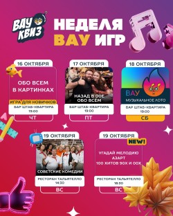 18 октября — Вау Музыкальное Лото (Бар Штаб-квартира, ул. Юбилейная 8)